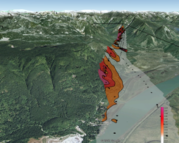 Since 2012 several helicopter-borne surveys for detection and 3D imaging of ore deposits were performed in rough terrain in the Canadian Rocky Mountains